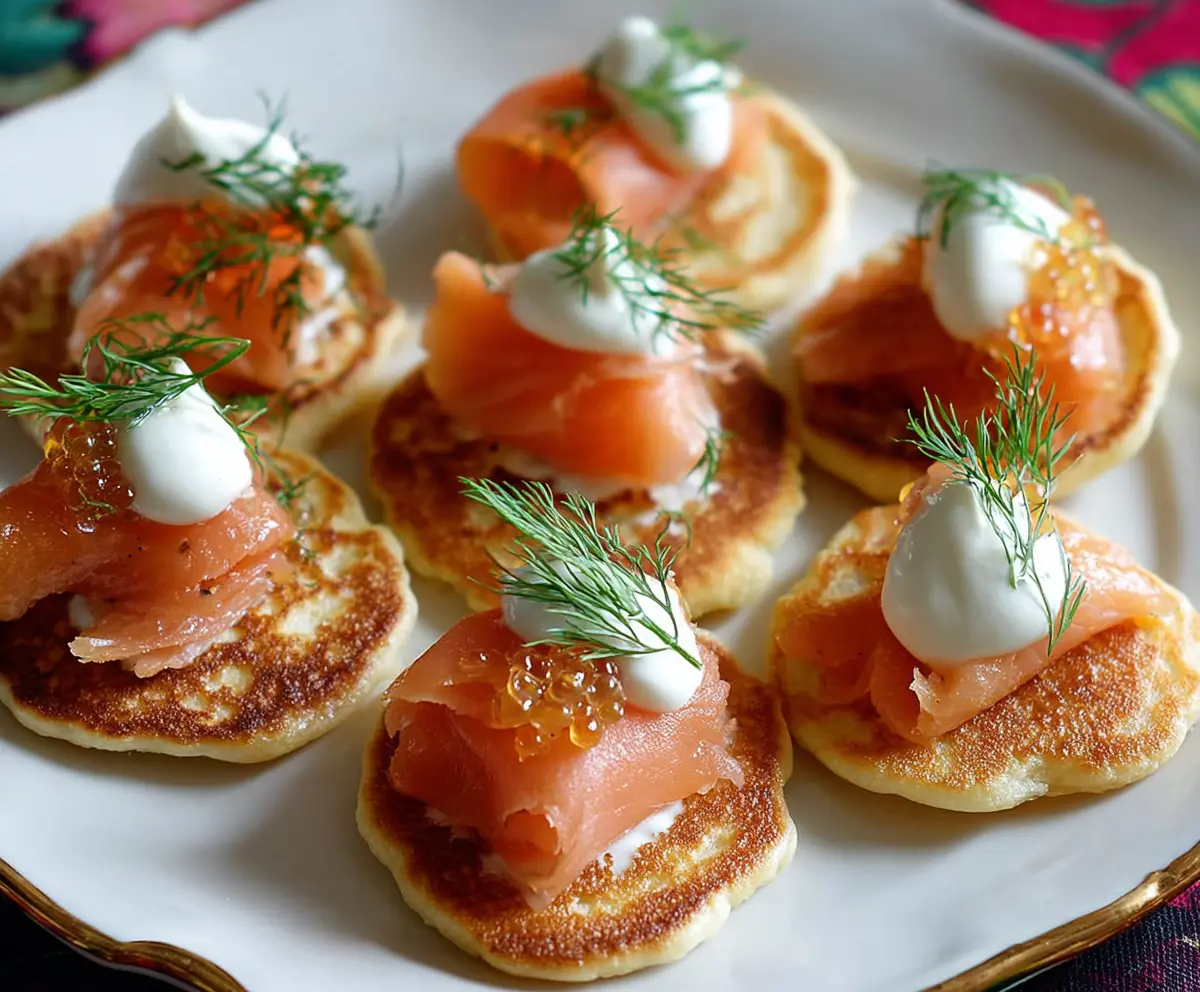 These Smoked Salmon Blini Bites are tiny, tasty treats perfect for any gathering! Soft, fluffy blinis topped with rich cream cheese and smoky salmon make everyone happy.