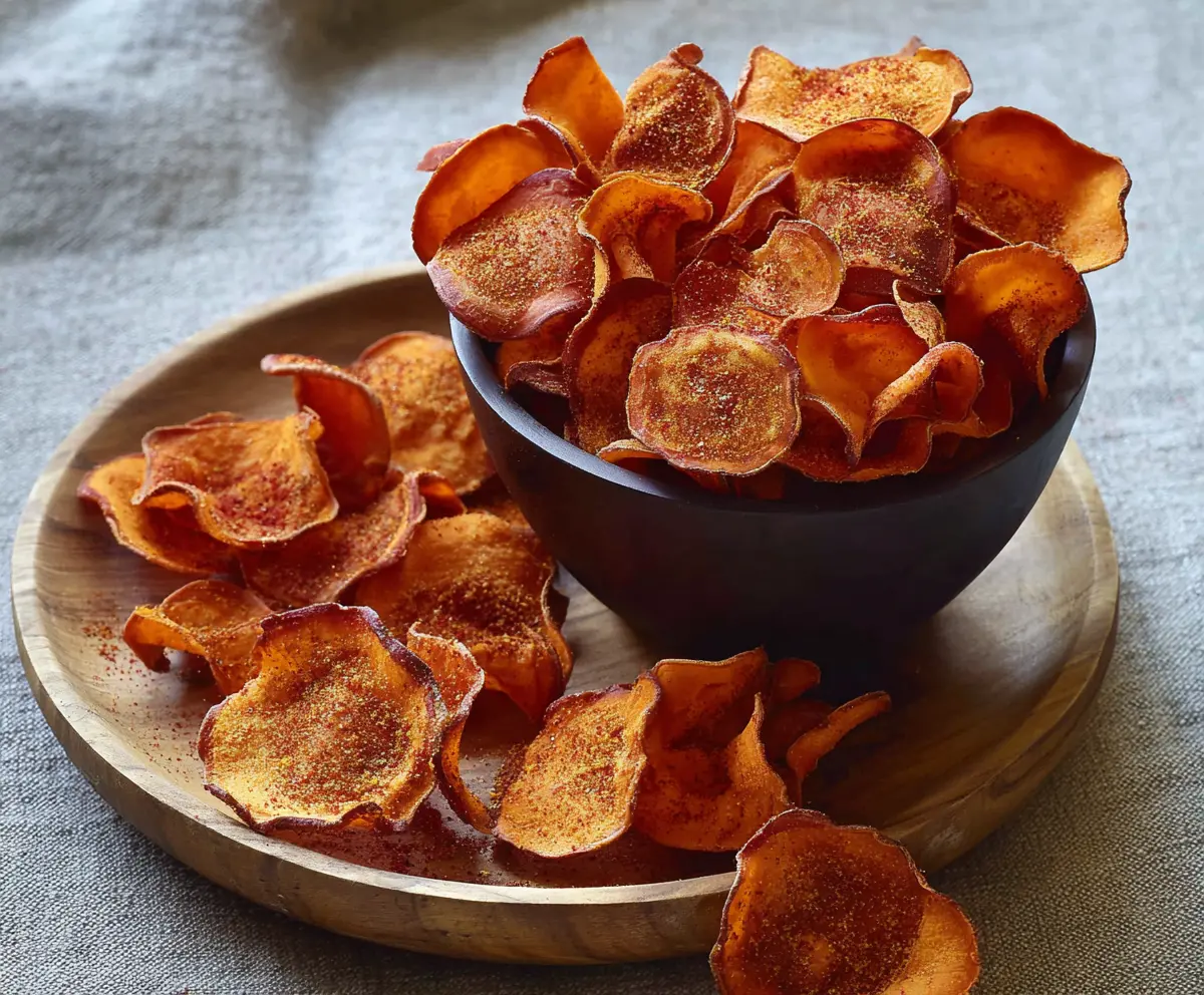 These spicy sweet potato chips are a fantastic snack! Crunchy, slightly sweet, and just the right amount of heat make them super tasty. They’re perfect for munching on movie night!