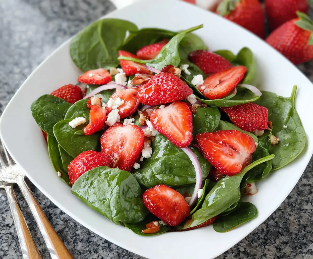 This colorful salad mixes fresh spinach with sweet strawberries and crunchy nuts. It’s light, healthy, and oh-so-refreshing—perfect for any meal!