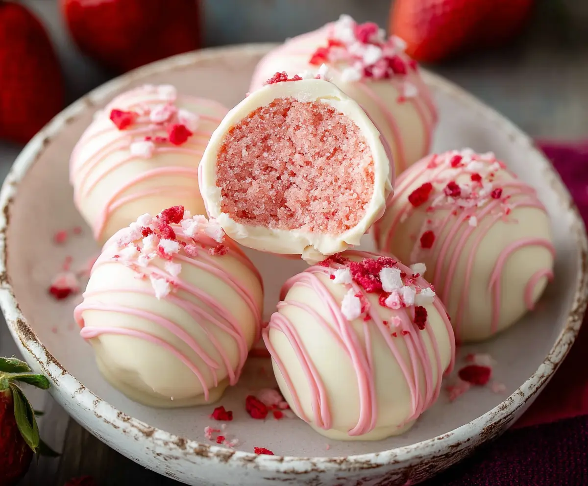 These strawberry cake balls are moist, sweet, and sure to be a hit at any gathering or as a delightful gift. Enjoy every bite!