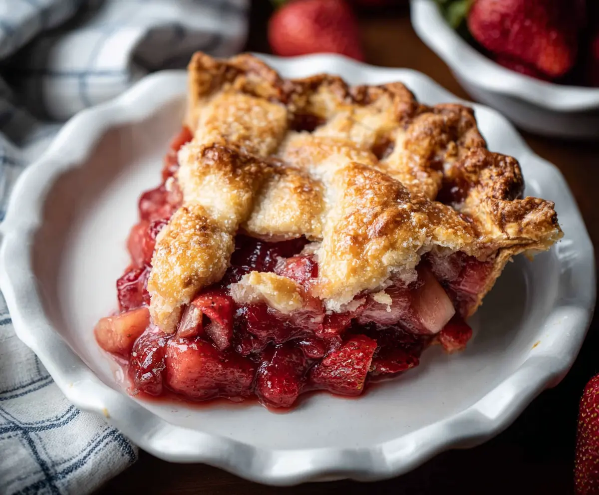 This delightful Strawberry Rhubarb Pie is a sweet and tangy treat everyone loves. The juicy strawberries mix perfectly with the tart rhubarb, all tucked into a flaky crust!