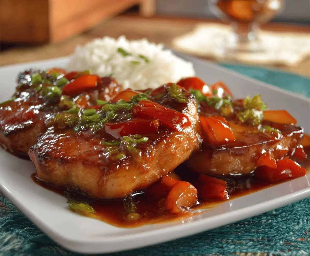 Enjoy your delightful Sweet and Sour Pork Chops—a tasty balance of sweet, tangy, and savory flavors paired with tender pork and colorful veggies!