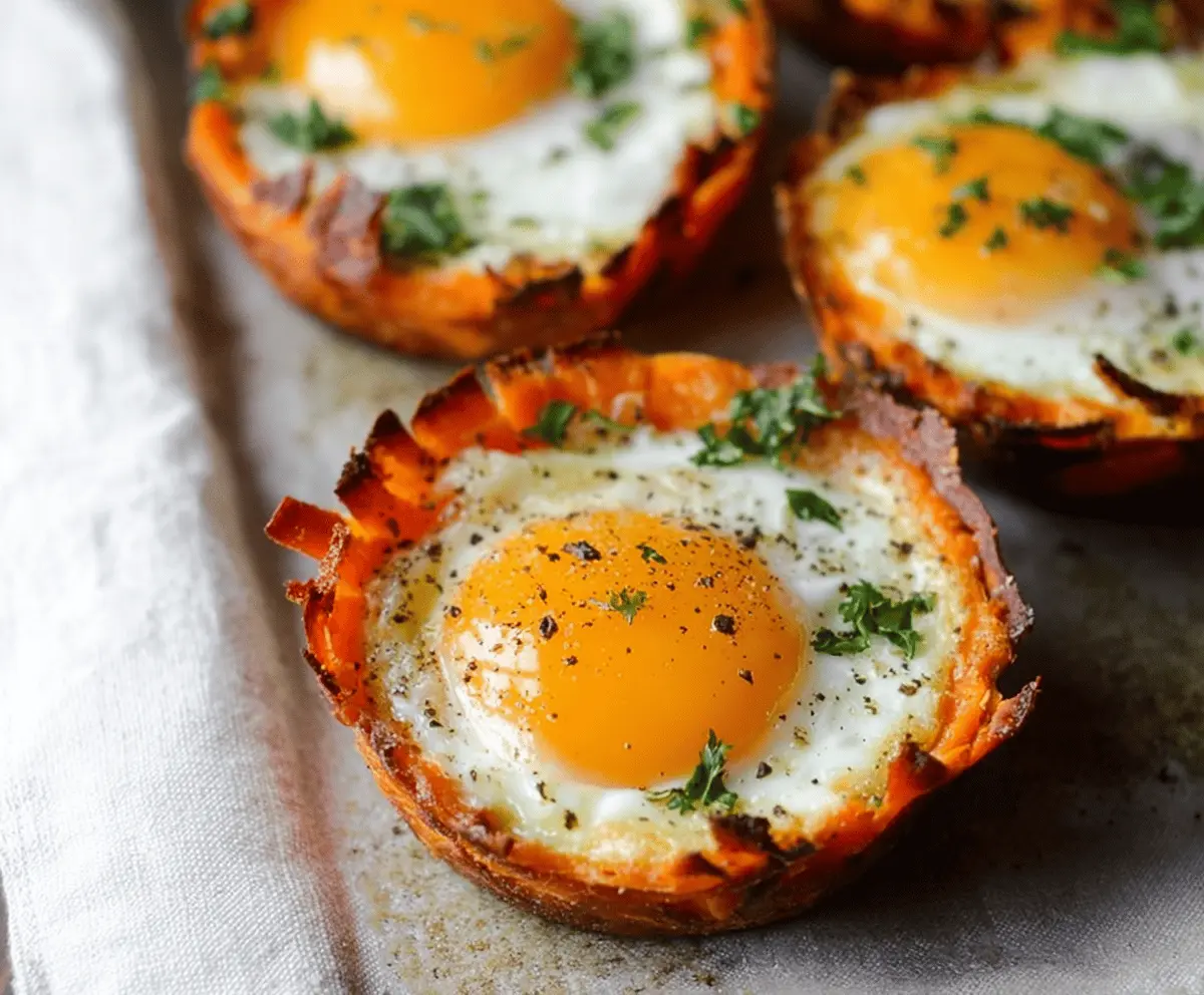 Sprinkle some chopped fresh parsley or cilantro on top for a burst of color and flavor, adding salt and pepper to taste if desired. Serve your delicious Sweet Potato Baked Egg Cups warm and enjoy your nutritious breakfast!