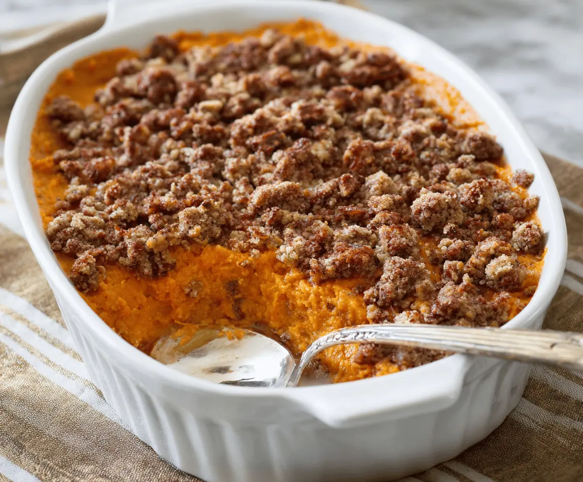 This Sweet Potato Casserole is a cozy dish topped with a crispy pecan streusel. It’s a perfect mix of sweet and crunchy that will make you smile.