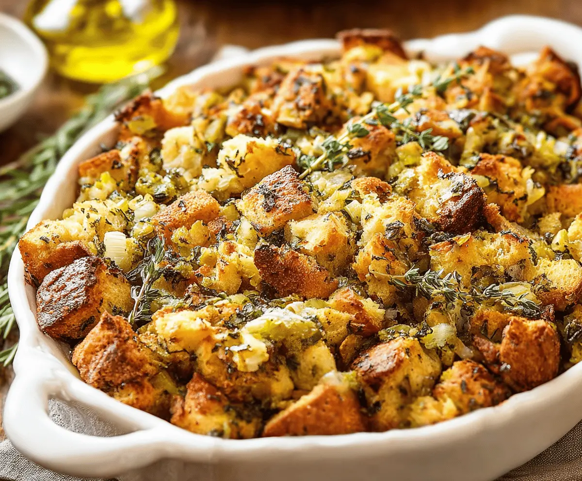 Yes, you can prepare the stuffing a day in advance! Simply follow the recipe up to the baking step, then cover and refrigerate. When you’re ready to bake, let it sit at room temperature for about 30 minutes before putting it in the oven.