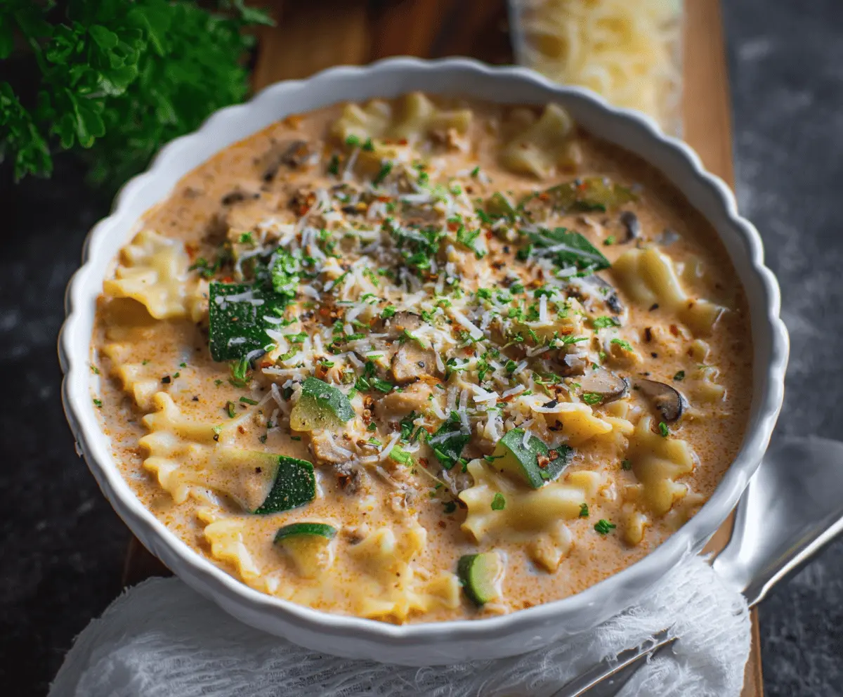 Finally, ladle the soup into bowls and garnish each serving with fresh chopped basil or parsley, and a sprinkle of additional Parmesan cheese on top. It’s time to enjoy your comforting vegetarian creamy lasagna soup!